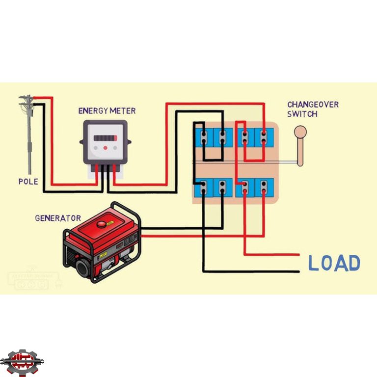 3. برق تولیدی توسط موتور برق را وارد مدار می‌کند تا برق خانه یا محل کار شما تأمین شود [03:35].